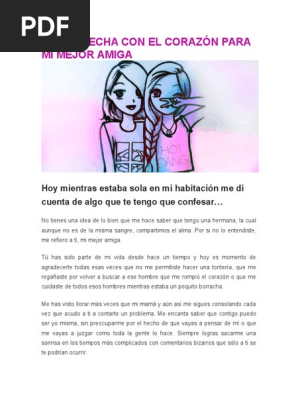 Los modelos de cartas mejores amigas que te mostraremos a continuación son ejemplos de lo que puedes escribirle a tu mejor amiga. Hacer una carta para un amigo es sencillo porque, si lo piensas, tienen una relación de confianza y, gracias a eso, se cuentan muchas de sus cosas. Puedes usar un bloc de notas físico, pero quizás sea conveniente guardar las notas en tu teléfono con la ayuda de una aplicación, en una sección titulada carta para mi mejor amigo. Pero como somos de la opinión de que el éxito es para los valientes, si te has enamorado de tu mejor amigo, tendrás que decírselo en algún momento. Pero si sigues esta estructura te será fácil poder escribir o pedir que te la redacten. Quizás una en la que agradezcas por la amistad y el cariño que tu amigo te demuestra. ¿cómo sería la mejor carta para un amigo desde tu punto de vista? Ver más ideas sobre cartas para mejor amiga, regalos para mejores amigos, regalos para mejor amigo. Estás cartas para mi mejor amiga que hagan llorar están inspiradas en aquellas personas qué de un momento a otro llegan a tu vida para darle un toque de amor, tranquilidad, entrega, lealtad y se hacen llamar amigos, esos verdaderos amigos que pueden contarse con los dedos de las manos y que siempre están ahí en los momentos más difíciles y más importantes de nuestra vida. Esta la hize para un amigp mio 😅💖 Si necesitas hacer o pedir que te redacten una carta de recomendacion para inmigración, puede ser difícil porque de lo que diga esa carta y sea interpretada su intención, está en juego la posibilidad de que quien te la solicite obtenga o no el permiso para inmigrar. El momento lo decides tú, pero qué mejor forma de declararte que una carta de amor. Modelos de cartas para mi mejor amiga.